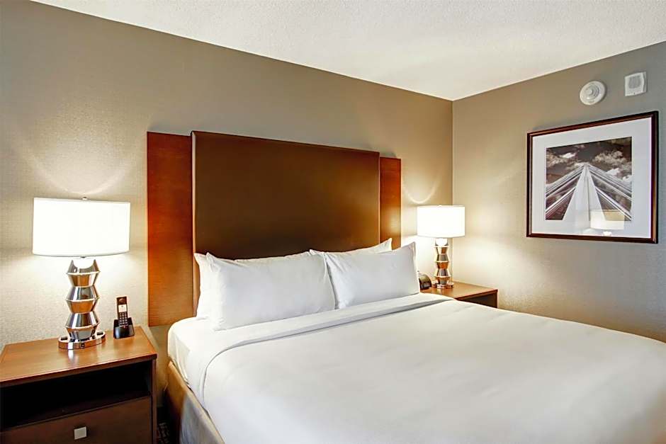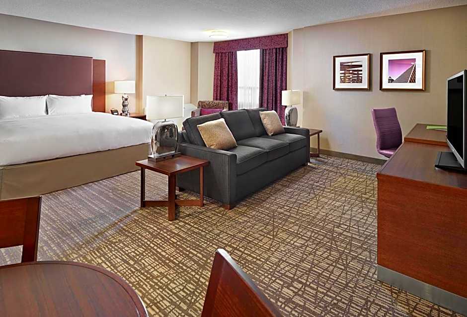 Offering an open floor concept, this spacious suite includes free Wi-Fi, a 42” flat-screen cable TV and an ergonomic work station. A seating area is provided. A min fridge and dining table are included. Please note that the room rates are based on 2 guests ( see Hotel Policies).